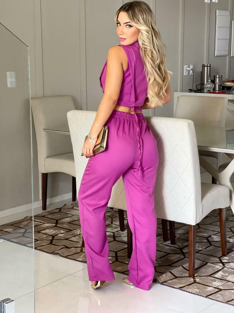 Conjunto de Blusa c/Botão mais Saia Lílas