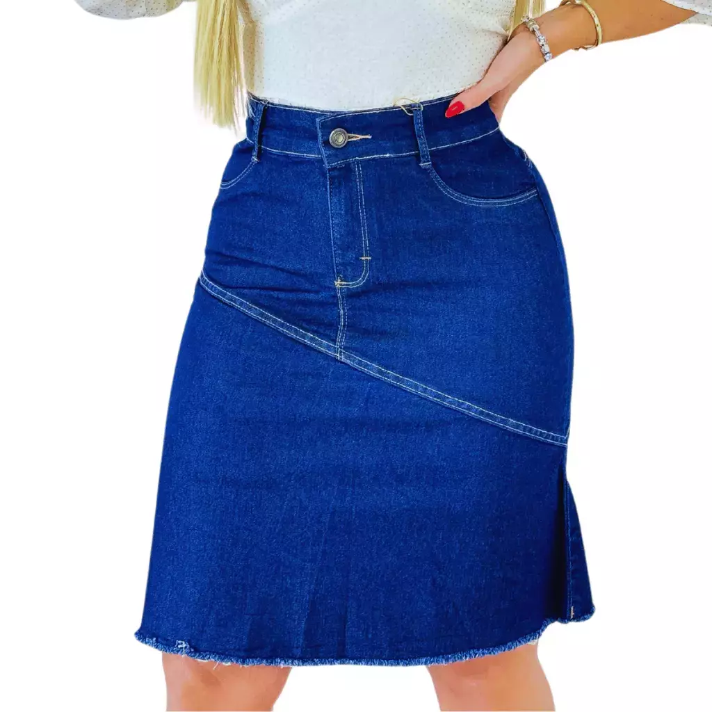 Saia Jeans Feminina Midi com Lycra: a escolha perfeita para mulheres modernas que valorizam conforto e estilo!